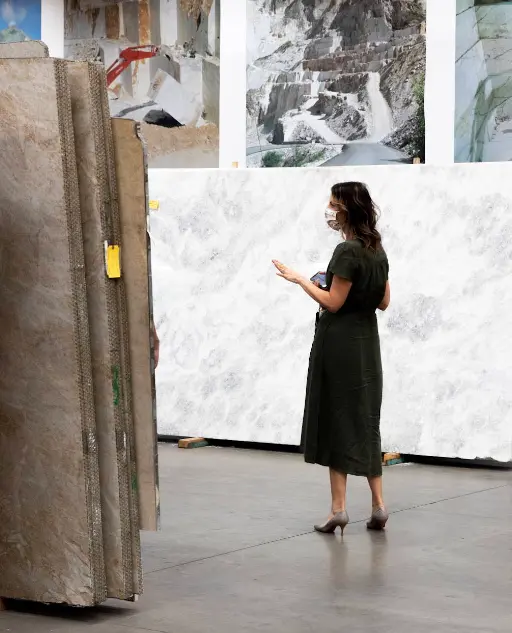 You can browse through our real-time inventory of natural stones and connect with one of our concierge specialists online. Or you can come to our showroom and have an interactive planning experience with your designers, architects, contractors, and fabricators in our conference room over espressos and lattes.